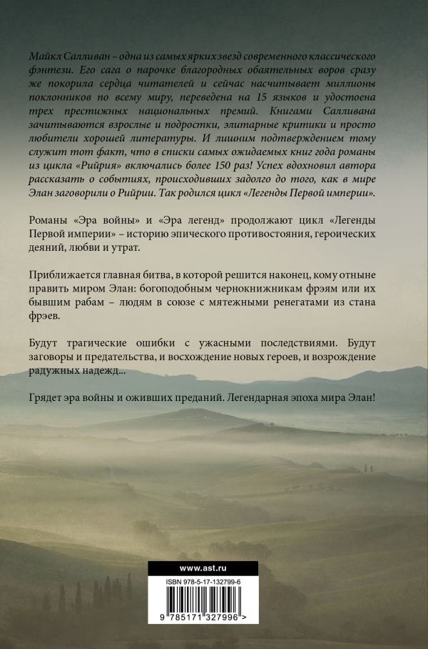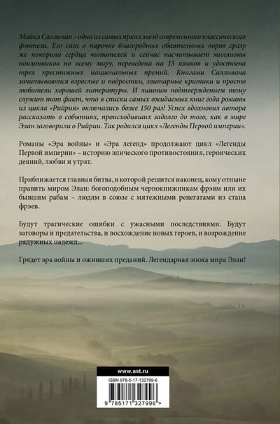 Michael Sullivan is one of the brightest stars of modern classic fantasy. His saga of a couple of noble charming thieves immediately won the hearts of readers and now has millions of fans around the world, translated into 15 languages and awarded three prestigious national awards. Sullivan's books are read by adults and teenagers, elite critics and fans of good literature. And the fact that in the lists of the most anticipated books of the year novels from the cycle "Riyria" included more than 150 times! The success inspired the author to tell about the events that took place long before the world of Elan talked about Riiria. Thus was born the Legends of the First Empire series. "The Age of War. The Age of Legends" is the continuation of the "Legends of the First Empire" cycle, a story of epic confrontation, heroic deeds, love and loss. The main battle is approaching, which will finally decide who will rule the world of Elan from now on - the godlike blacksmiths Frey or their former slaves - humans in alliance with rebellious renegades from the Frey camp. There will be tragic mistakes with terrible consequences. There will be conspiracies and betrayals, and the rise of new heroes, and the revival of rainbow hopes.... An era of war and living legends is coming. The legendary era of the world of Elan!