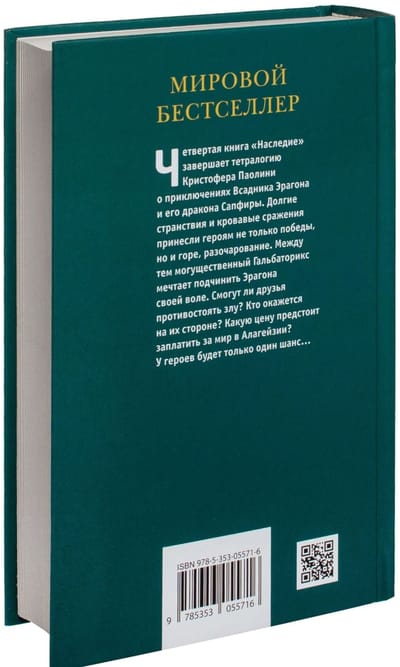 Book 4 of the tetralogy. Not long ago, dragon rider Eragon was a poor country boy and his dragon Saphira a blue stone lost in the forest, but now the fate of the whole world depends on them. Long months of wandering and battles have brought victory and hope to the heroes, though they have broken their hearts. But the real battle awaits them ahead. Eragon and Saphira will have to fight the mighty Galbatorix. By this decisive moment, they must become strong enough to defeat him. Who knows if they will be able to overthrow the cruel king and restore justice to Alagaesia? And if they can, at what cost? They will only have one chance...