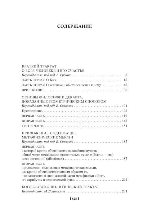 The Netherlandish rationalist philosopher Benedict Spinoza (Baruch d'Espinoza) was born in Amsterdam in 1632 to a wealthy family of Spanish Jews who had fled from the persecution of the Inquisition. Operating the so-called geometric method, the philosopher considered the universe as a slender mathematical system and in his reasoning was able to reconcile and bring together the medieval theocratic world of immutable truths and the science of the New Age, which decided that only the tireless work of reason is able to approach the comprehension of truth. For "heretical" ideas Spinoza was eventually expelled from the Jewish community, where he was educated, and subsequently, although his works won respect among the most enlightened people of his time, the philosopher was not inclined to enjoy the benefits of generous patronage. The only work published during Spinoza's lifetime with his name on it was "The Foundations of Descartes' Philosophy Proved by Geometry," with an "Appendix containing Metaphysical Thoughts." The main masterpiece that summarized Spinoza's life's work, the Ethics, on which he had been working since about 1661 and where his system of reasoning appears in all its splendid structure, was published only in 1677, after the author's death.