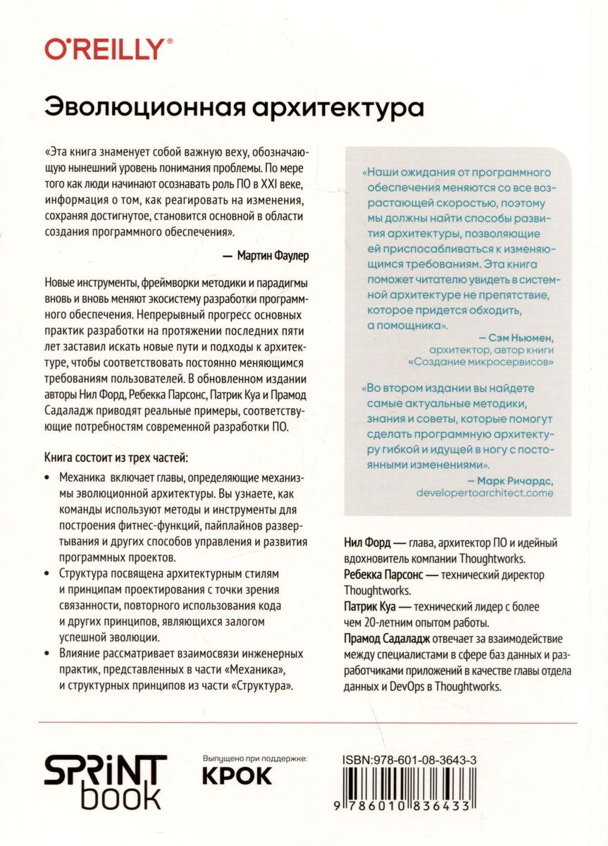 New tools, frameworks methodologies and paradigms are changing the software development ecosystem time and again. The continuous progress of core development practices over the past five years has forced the search for new ways and approaches to architecture to meet ever-changing user requirements. In this updated edition, authors Neil Ford, Rebecca Parsons, Patrick Qua, and Pramod Sadalaj provide real-world examples that meet the needs of modern software development.