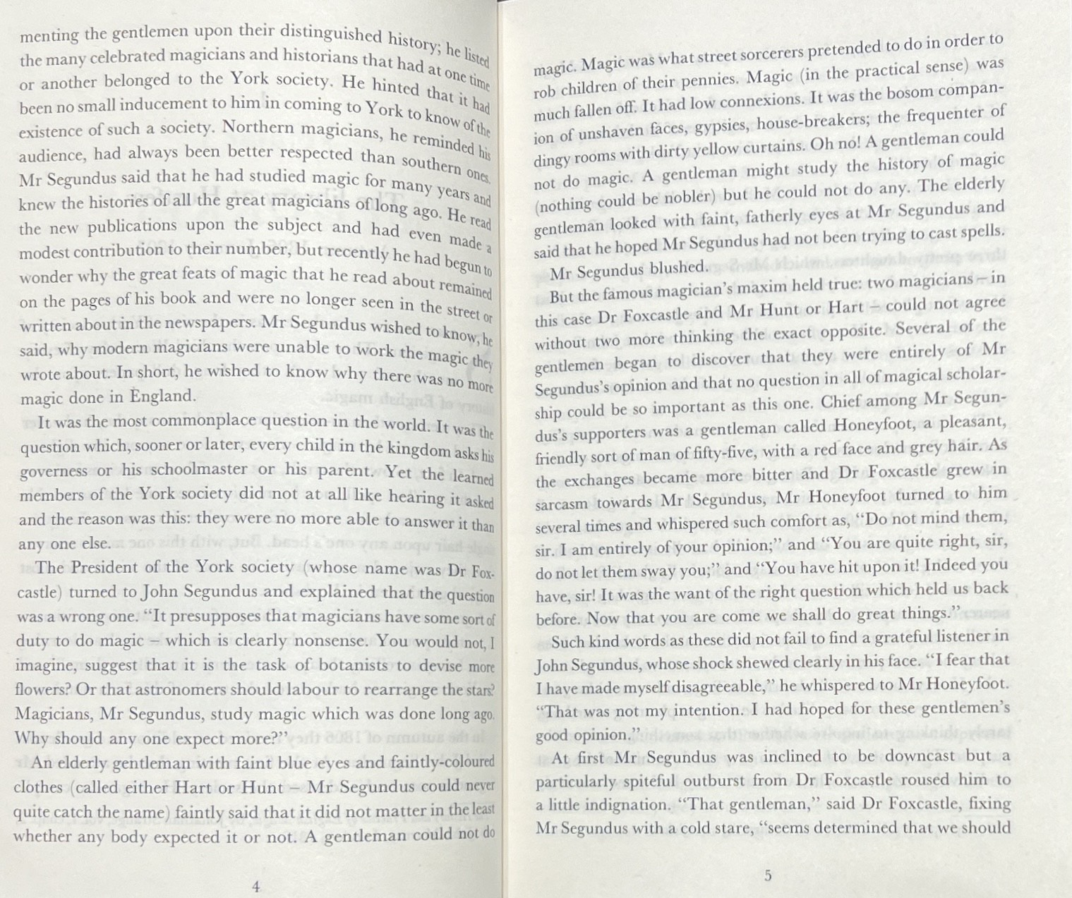 The year is 1806. Centuries have passed since practical magicians faded into the nation’s past. But scholars of this glorious history discover that one remains: the reclusive Mr Norrell, whose displays of magic send a thrill through the country. Proceeding to London, he raises a beautiful woman from the dead and summons an army of ghostly ships to terrify the French. Yet the cautious, fussy Norrell is challenged by the emergence of another magician: the brilliant novice Jonathan Strange. Young, handsome and daring, Strange is the very antithesis of Norrell. So begins a dangerous battle between these two great men which overwhelms that between England and France. And their own obsessions and secret dabblings with the dark arts are going to cause more trouble than they can imagine.