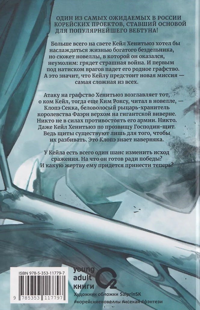 At the head of the army is the man Kim Roksoo read about in the novel—Klopeh Sekka, the white-haired guardian knight of the kingdom of Faern, riding a giant wyvern. No one can stand against his army. No one. Not even Cale Henitudes, nicknamed the Silver Shield. After all, shields are meant to be broken. Klopeh knows this for sure. The chances of changing the outcome of the battle are slim to none. What is Cale willing to do to win? What sacrifices will he have to make this time?
