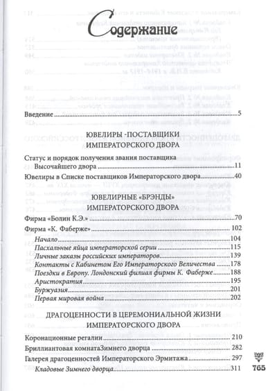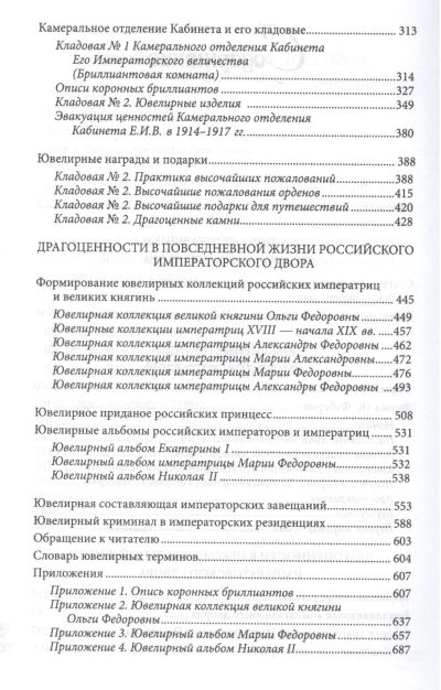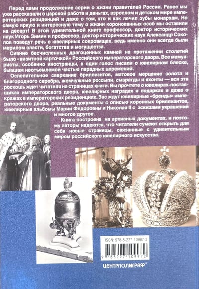 The sparkle of countless precious stones was the hallmark of the Russian Imperial Court for centuries. Memoirists, especially foreigners, wrote unanimously of the jewelry brilliance that was an integral part of ceremonial occasions. The dazzling sparkle of diamonds, the matte shimmer of gold and fine silver, pearl placers, emeralds, and sapphires—all this luxury awaits the reader within the pages of this book. You will read about jewelry "brands" and jewelers who supplied the Imperial Court, jewelry awards and gifts, and even thefts from imperial residences. You will also find actual documents listing the crown diamonds, jewelry albums belonging to Maria Feodorovna and Nicholas II with sketches of jewelry, and much more. The book is based on archival documents, and the authors hope that readers will discover new chapters in the fascinating world of Russian jewelry art.