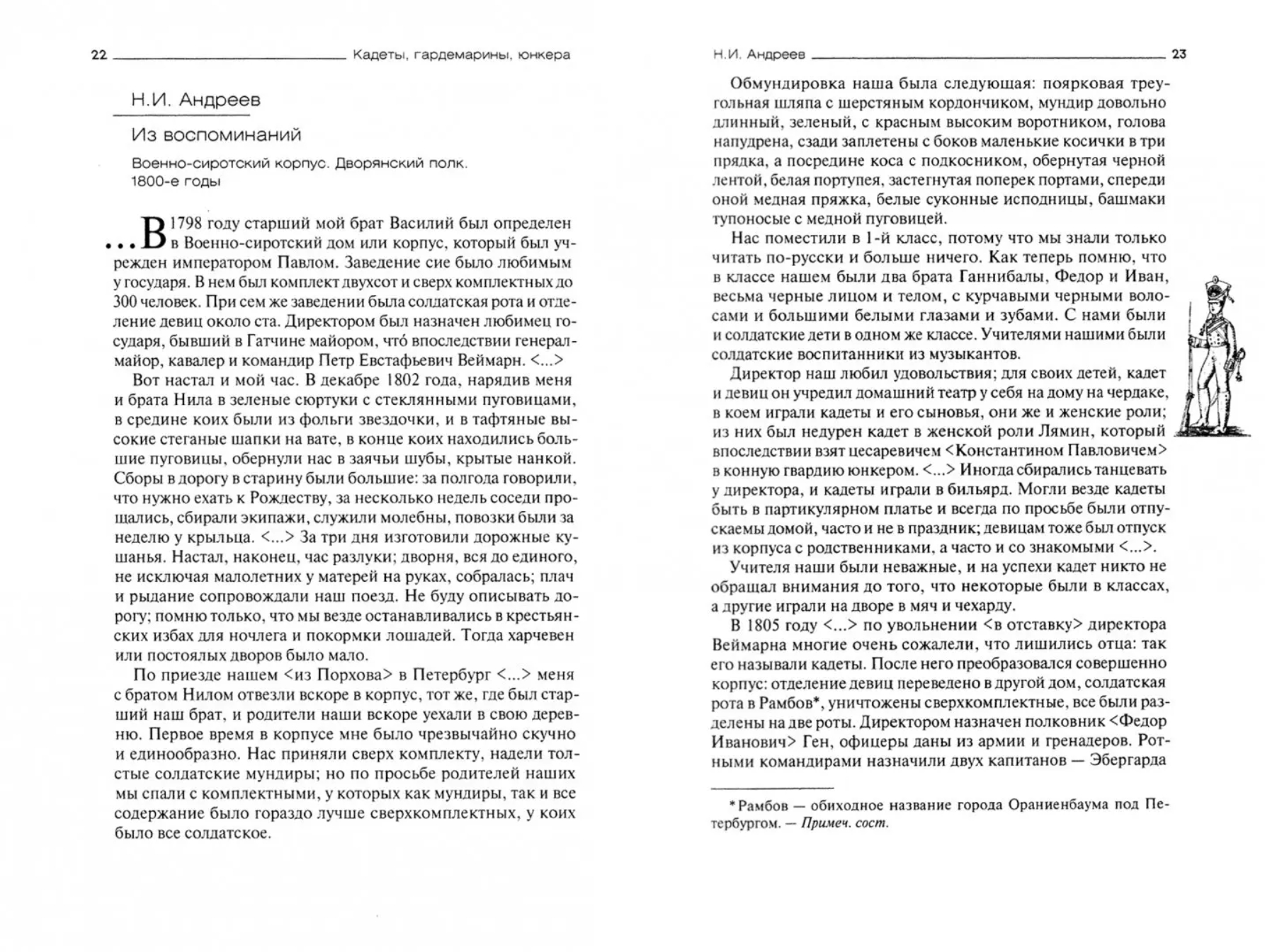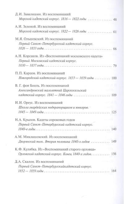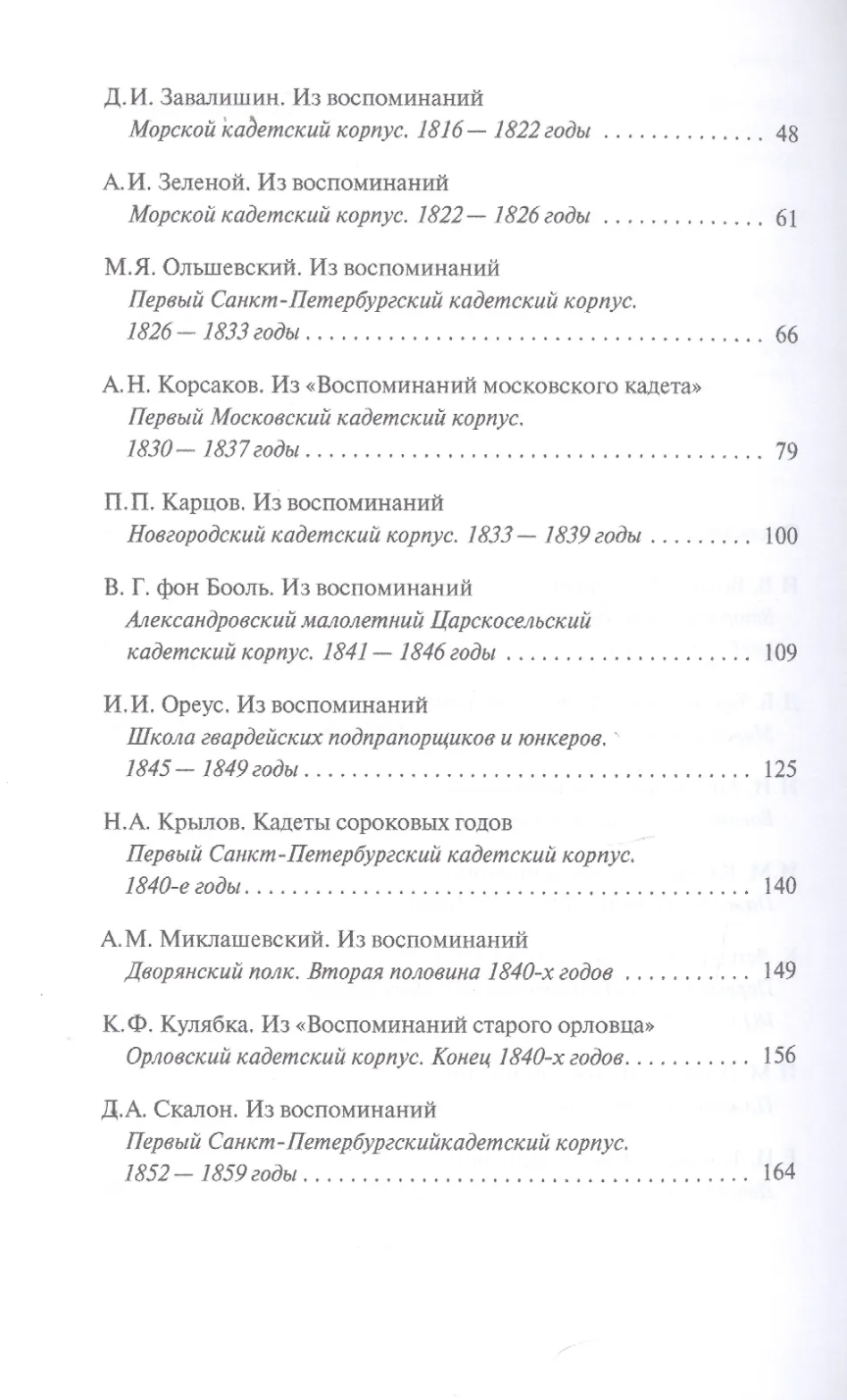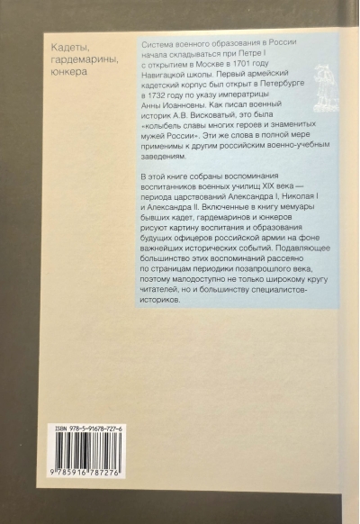 This book contains the memoirs of alumni of 19th-century military academies—the reigns of Alexander I, Nicholas I, and Alexander II. The memoirs of former cadets, midshipmen, and military cadets paint a picture of the upbringing and education of future officers of the Russian army against the backdrop of major historical events. The vast majority of these memoirs are scattered across the pages of periodicals from the 19th century, making them inaccessible not only to the general public but also to most historians.
