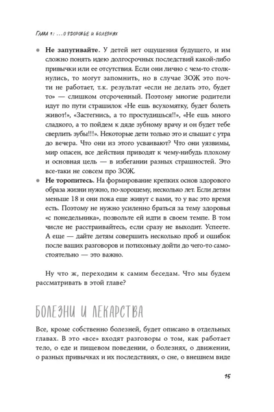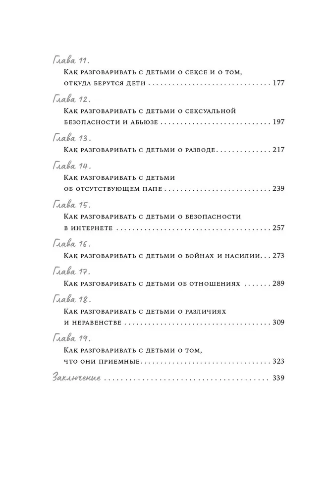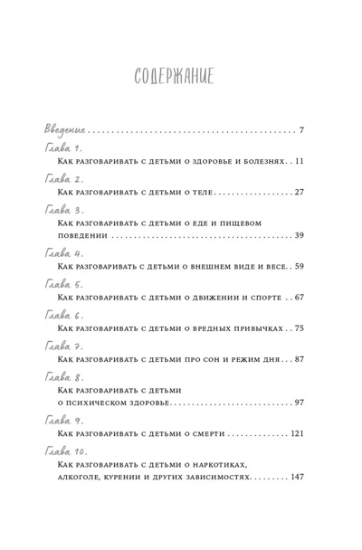 Each topic in the book is dedicated to a separate chapter. The result is an adult-children's phrasebook, designed to help start a conversation and convey important thoughts and values, taking into account the age and peculiarities of the child's perception.