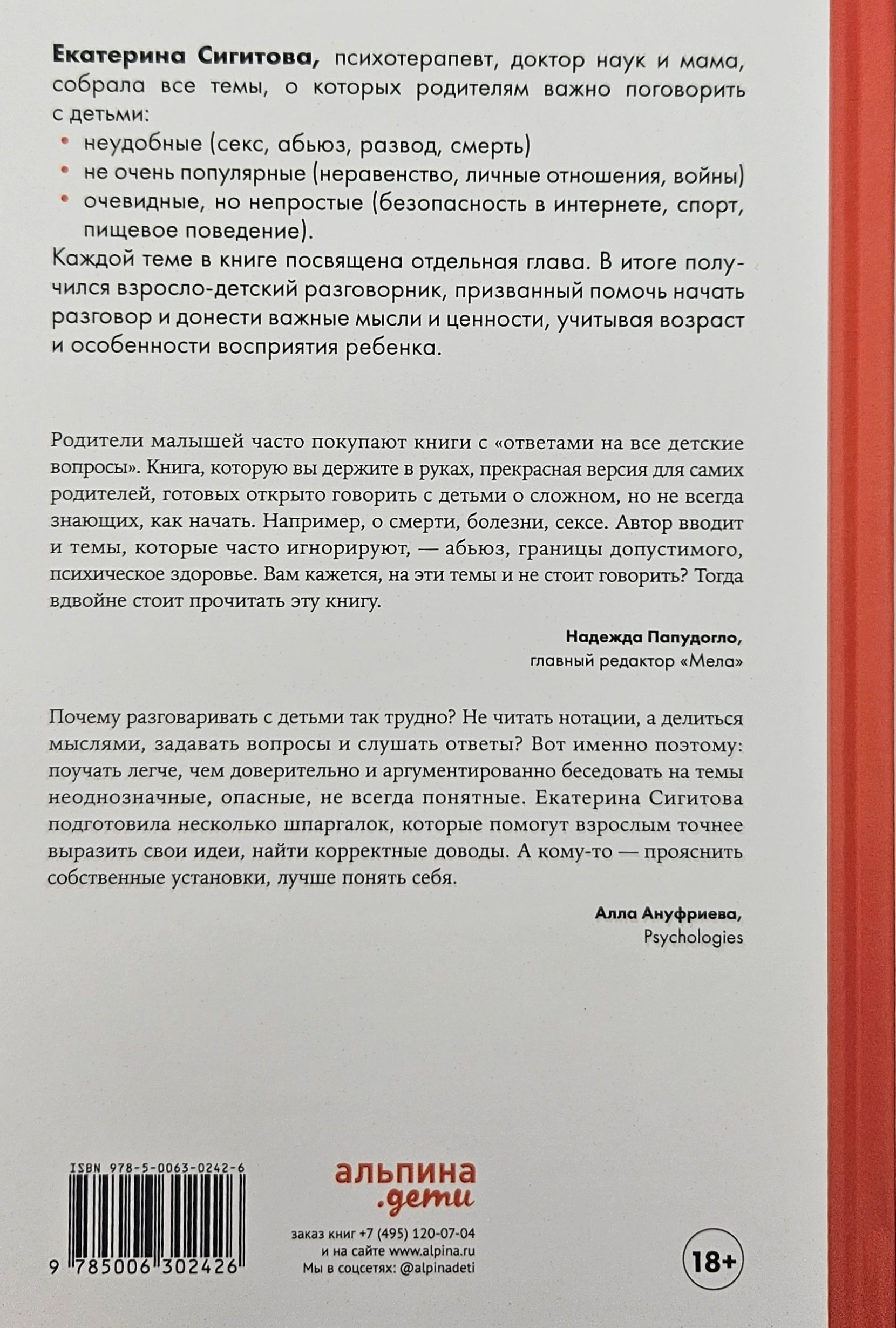 Children grow up, learn about the world and ask questions that we, parents, do not always know the answers to. Ekaterina Sigitova, psychotherapist, doctor of sciences and mother, has collected all the topics that are important for parents to talk about with their children: