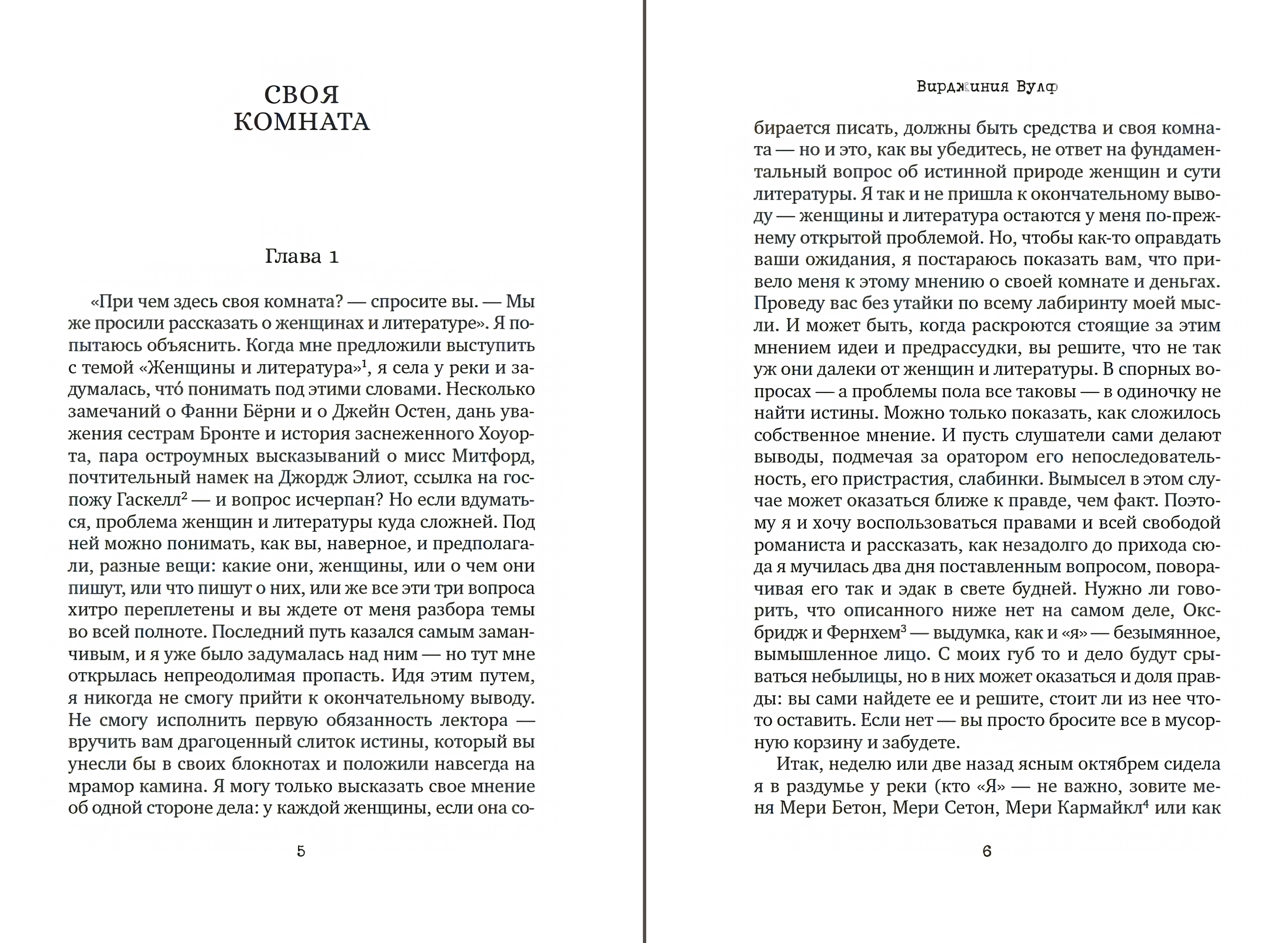 The English writer Virginia Woolf (1882–1941) is one of the central figures of modernism and a recognized classic of Western European literature of the 20th century. Her name occupies an honorable place among such significant contemporaries as J. Joyce, T. S. Eliot, O. Huxley, and D. H. Lawrence. The novels Mrs. Dalloway, To the Lighthouse, and Orlando are distinguished by a unique style capable of conveying the subtlest shades of psychological states and feelings, a style that ensured Virginia Woolf recognition as one of the greatest masters of psychological prose. A literary experimenter, Woolf devoted much attention to understanding the theoretical foundations of writing in general and her own avant-garde work in particular. This edition includes her famous critical essays, including the largest and most famous of them, A Room of One's Own, a brilliant discussion of the enormous role of everyday life in the creative process. In this and other non-fiction works by Virginia Woolf, one is still struck by the writer's deeply personal view and the striking freshness of her reflections on the nature of literary craft and reader interest.