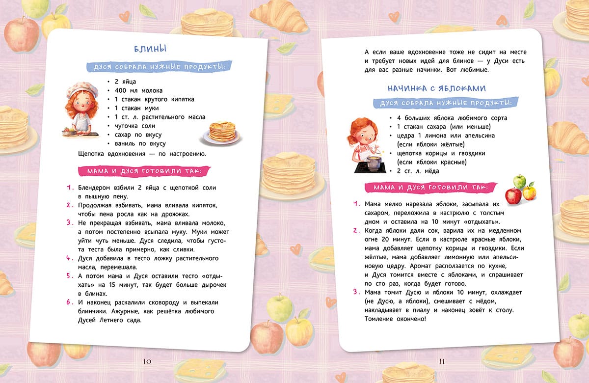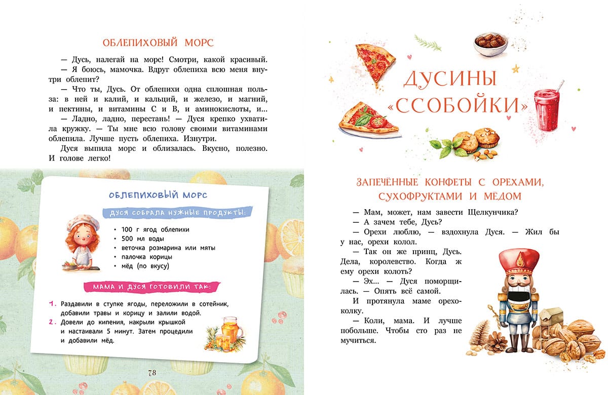 When Dusya was a little girl, she was invited to the kitchen like a queen - eat up! Now Dusya is almost seven, and she can announce "dinner is served" by herself. All because Dusya is learning to cook! On the pages of this book are real culinary miracles, flavored with a pinch of fun and mischievous stories. How to cook meatballs for giants and cutlets by pretend, white soup and crumb cake, where to get the sun in the plate and how to add magic to cookies? We invite all budding cooks (and their moms and dads) to find out how Dusi did it, and be sure to try it for yourself! Choose any of the boring recipes for all occasions: when you want to be lazy or experiment, to eat alone or to surprise a group of guests, to make a new dish from a familiar one or to cook something inexpressible. Bon appetit!