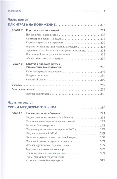 The ability to close your position in a timely manner is one of the most important skills of a professional trader. Short selling gives you the opportunity to make money on dips. This is an especially important skill during crises and instability. A trader who knows how to sell in, short, doubles his chances. The first part of the book deals with general issues - psychology, risk management and record keeping. The second and third parts deal with selling and playing short, and the fourth part is a case study of trades that illustrate the principles of selling and shorting with lessons from one of the most significant bear markets in history. The book includes test questions and checklists to assess your knowledge.
