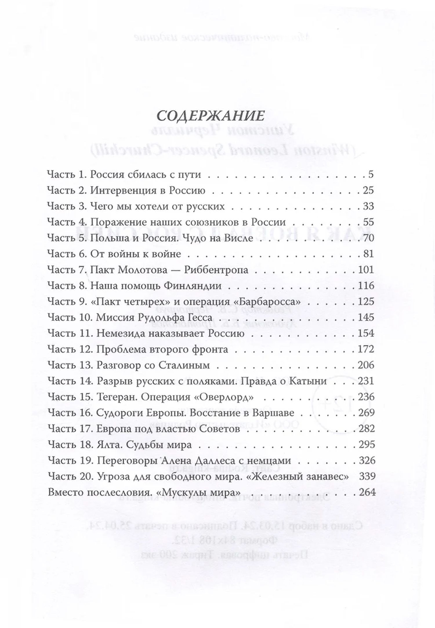 Furthermore, it describes Churchill's policy during World War II, when Allied aid to the Soviet Union was accompanied by an attempt to prolong military operations on the Eastern Front in order to bleed the USSR dry. Finally, it discusses the beginning of the Cold War, in which Winston Churchill played a leading role.