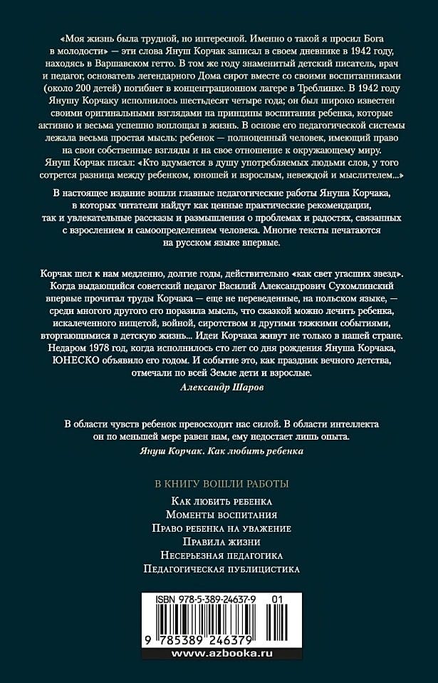 This edition includes Janusz Korczak's major pedagogical works, in which readers will find both valuable practical recommendations and fascinating stories and reflections on the problems and joys of growing up and self-determination.