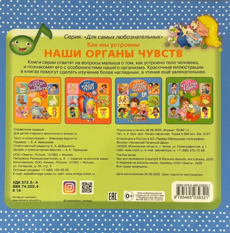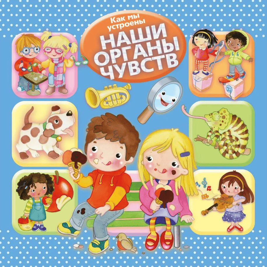 The educational and developmental book "How We're Made. Our Senses," published by Omega in the "For the Most Inquisitive" series, is designed for adults and preschoolers to share. It will teach your child in an engaging way about the senses and their responsibilities.