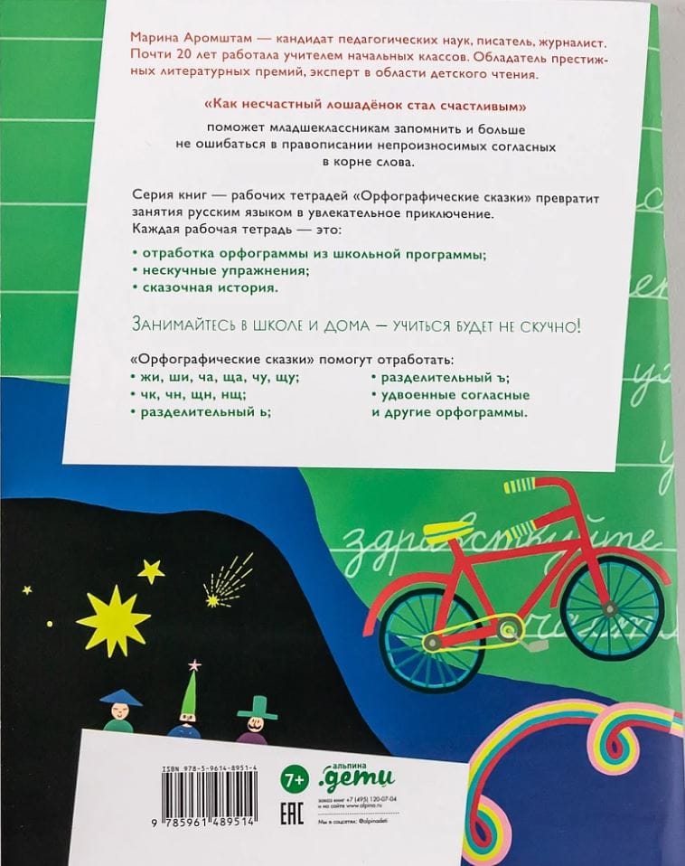 Candidate of Pedagogical Sciences, writer and journalist Marina Aromshtam offers to work out and memorize orthograms with the help of a fascinating story - a real quest, passing which the child in a playful form will repeat the rules so many times that he simply cannot not remember them.