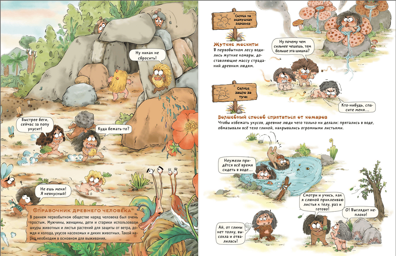 The series of books "Attention: Primitive Man!" with the help of bright illustrations and fascinating text tells about the clothing, food, housing and activities of primitive people.