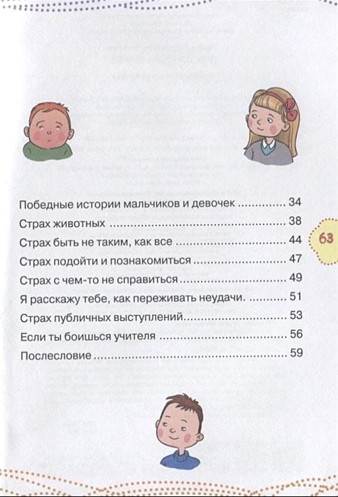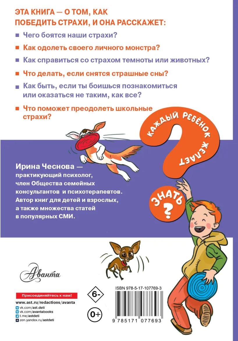 This time the famous family psychologist Irina Chesnova will reveal to young readers all the secrets of overcoming fears. What to do if you are afraid of the dark, animals, monsters or ghosts? How to be if you are afraid to get acquainted or answer at the blackboard? How to overcome the fear of failure? Is it possible to banish nightmares? And in general, what are afraid of our fears, how not to surrender to them as a prisoner, and on the contrary to give heat and feel confident and brave, will tell this book.