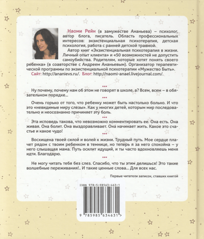 Psychology articles often say that self-love is the key to making everything else work out. But how do you love yourself? You need to find a Loving Mother within for your Inner Child. You need to feel it within you and love it. It's a long and very difficult journey. But meeting the Child brings much joy, strength, and support. When it's heard, understood, and loved, it brings ideas, a sense of enjoyment, energy, and inspiration. Naomi Raine writes about her experience in psychotherapy, during which she became acquainted with the Child and other internal figures. The author's diary entries are supplemented by an analysis of the situation from the perspective of a practicing psychotherapist. The book offers one of the first steps: trying to hear the voice of the Inner Child and respond to it.