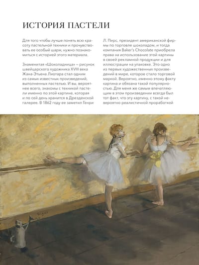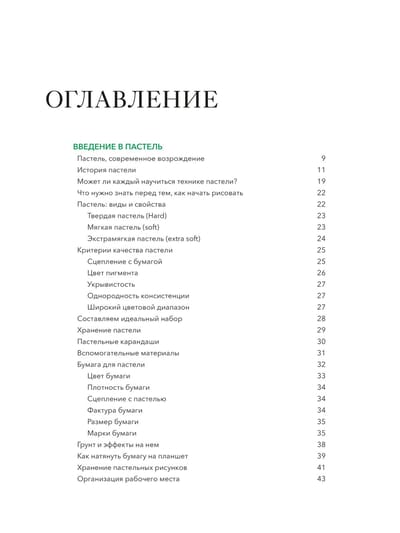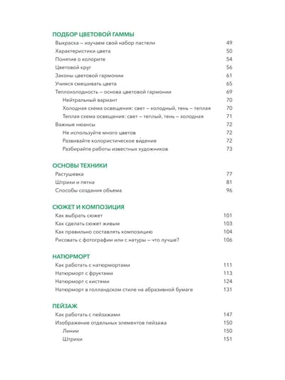 Pastels are delicate strokes and soft hues filled with lightness, depth and drama. In the hands of different artists it acquires individual notes that fill the picture with life. In her book Elena Tatkina - graphic artist, teacher of "Kalacheva school" - presents 17 step-by-step lessons that will help you find your approach to painting smoky paintings. With the help of master classes you will learn to feel pastel, understand it and apply it so that your paintings seem weightless and magical. You will be able to create your work in a unique technique, applying colorful combinations and presenting it in an interesting presentation. The author shares knowledge that will help you comfortably master drawing skills, find inspiration and free yourself from extraneous thoughts for the time of creation. You have every chance to become the kind of artist who will inspire others with your airy work.