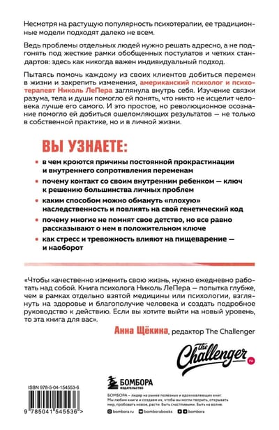 In an attempt to help each of her clients to achieve changes in their lives and to consolidate the changes, American psychologist and psychotherapist Nicole LePera looked inside herself. Studying the mind, body and soul connection helped her realize that no one heals a person better than themselves. And this simple but revolutionary realization has helped her achieve stunning results - not only in her own practice, but in her personal life as well. Today, the blog of the creator of "holistic psychology" is read by more than 4 million people, and her tools are used by people from all over the world. LePera shows how childhood traumas can manifest in the present and future: not just abusive and co-dependent relationships or emotional immaturity, but literally health problems. But all of this is solvable - if you take your healing into your own hands.