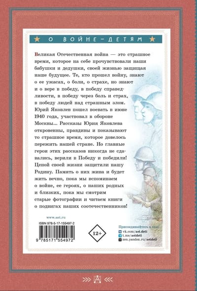 The book "How Sergey went to war. Stories" includes some of the most famous works of Yuri Yakovlev about the war, about the military childhood. Yuri Yakovlev was drafted into military service in June 1940, participated in the defense of Moscow, was wounded, his mother died in besieged Leningrad. Yuri Yakovlev experienced the horrors of war and wrote stories heartfelt, honestly showing the underbelly of those terrible times. The memory of the Great Patriotic War is passed from generation to generation, through stories, books, through the memories of elders and through worn photos of the front years. The war cannot be forgotten. It must be remembered.