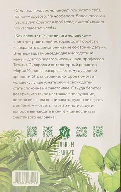 How to raise a happy person is a book for parents who want to find and maintain mutual understanding with their children. In fourteen conversations, two mothers with many children, Doctor of Pedagogical Sciences Professor Tatiana Sklyarova and literary editor Maria Minaeva, reveal the topic of spiritual maturity. This condition helps a person to get to know himself and his children better, to become calmer and happier. Where does trust come from, what is true obedience, whether the school should educate, whether it is necessary to play with the child, the answers to these and many other questions you will find in the book How to raise a happy person.