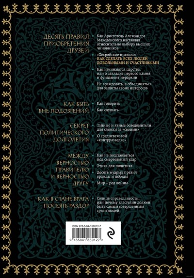 This is a worthy gift for any ambitious and purposeful person. A handbook for a civil servant, a businessman or a young person standing at the beginning of his career. The book is published in a solid hardcover with gold embossing, the text is decorated with oriental ornaments.