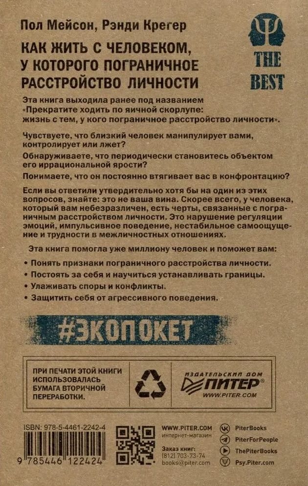 If you answered affirmatively to even one of these questions, know this: it's not your fault. Most likely, the person you care about has traits associated with borderline personality disorder. These include impaired emotion regulation, impulsive behavior, an unstable sense of self, and difficulties in interpersonal relationships. This book will help you: - Understand the signs of borderline personality disorder; - Stand up for yourself and learn to set boundaries; - Resolve disputes and conflicts; - Protect yourself from aggressive behavior.