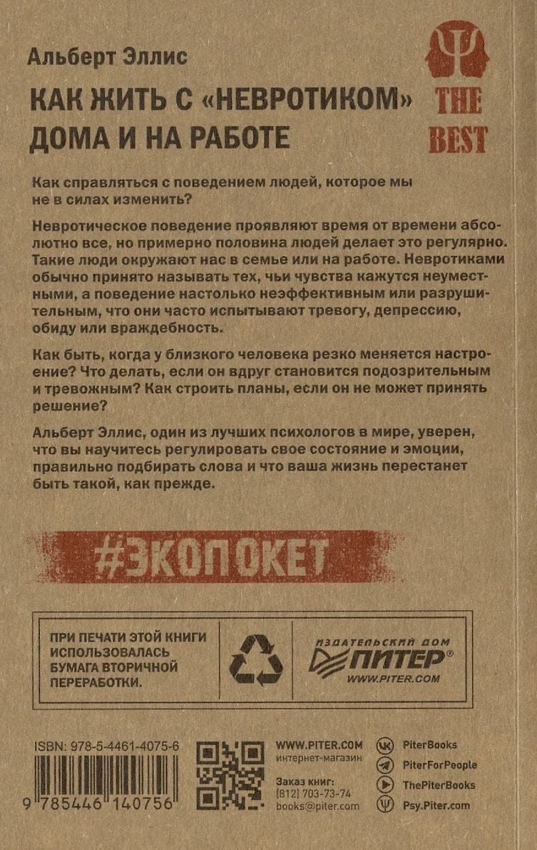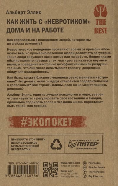 How to deal with people's behavior that we can't change? Absolutely everyone exhibits neurotic behavior from time to time, but about half of people do it regularly. Such people surround us in our families or at work. Neurotics are usually called those whose feelings seem inappropriate and whose behavior is so ineffective or destructive that they often experience anxiety, depression, resentment, or hostility. What to do when a loved one's mood changes dramatically? What to do if he suddenly becomes suspicious and anxious? How to make plans if he cannot make a decision? Albert Ellis, one of the best psychologists in the world, is sure that you will learn to regulate your state and emotions, choose the right words, and that your life will no longer be the same.