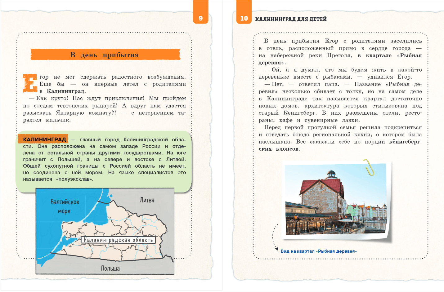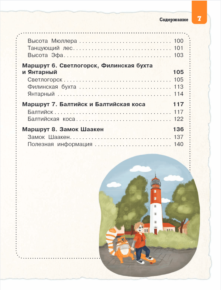 The boy Egor and his magical assistant cat Murr will be your guides to the wonderful world of the once Prussian cities of Koenigsberg, Rauschen, Kranz, Pillau and Palmniken, and nowadays Russian Kaliningrad, Svetlogorsk, Zelenogradsk, Baltiysk and Amber. You will learn their history, walk along the ancient streets, visit medieval castles and kirchas, and also see the main natural sights of the region - Curonian Spit, Fili Bay and Baltic Spit. Descriptions of the sights are accompanied by bright illustrations and photographs, which will help young readers to better visualize each place.