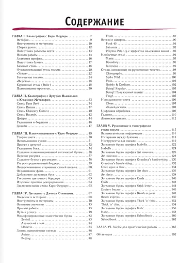 The word "calligraphy" translates to "beautiful handwriting". This art began as a utilitarian process, but has evolved into the creation of dynamic and elegant art forms. In a world overflowing with computerized fonts, people are increasingly attracted to beautiful handwritten text done with a regular pen, pen, brush, and even a simple pencil. This book is the perfect start to your journey into the world of calligraphy and lettering. In it you will find detailed instructions on how to represent each letter in a wide variety of fonts. The authors of the book - experienced painters and calligraphy teachers - will make the process of learning lettering easy and enjoyable for artists of any skill level.