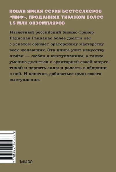 Renowned Russian business coach Radislav Gandapas has been successfully teaching public speaking to anyone for over ten years. This book teaches the art of love—love for speaking, as well as the ability to share your energy with your audience and draw strength and joy from communicating with them. And, of course, how to achieve your goals.