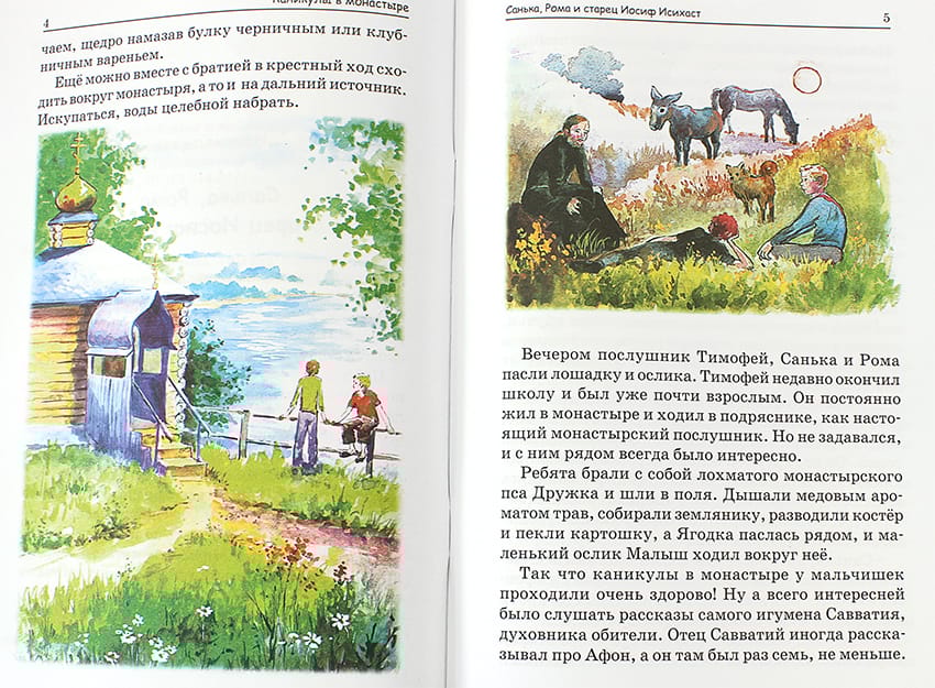 Olga Rozhneva's colorfully illustrated "Vacation in a Monastery" is a touching children's story about the summer vacation of two twelve-year-old boys at a small Ural monastery. There were so many interesting things to do there! Night services according to the Athonite rite, a horse named Yagodka, and a donkey named Malysh... True, there were obedient tasks: watering the garden, weeding carrots and onions. But when you work together, especially in the fresh air, it's not so difficult...