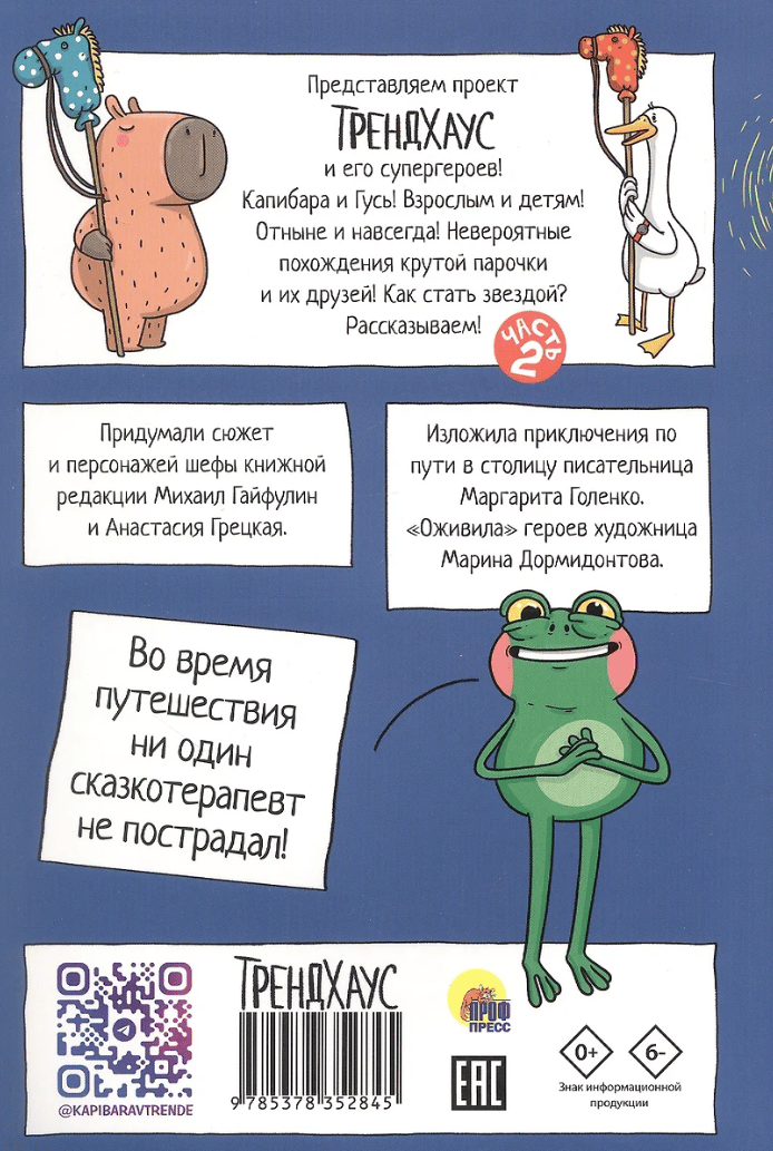 The irresistible desire to become superstars pushes Capybara and Goose to set off on a journey full of dangers and adventures. But the thirst for fame haunts not only this couple, but also Chihuahua, familiar from the previous part of the comic, who is so easy to upset. Together they overcome the difficult path to Moscow, so that soon three new stars will light up among the other capital lights.