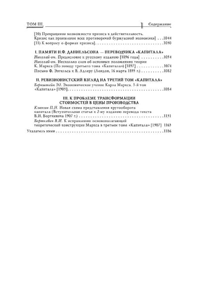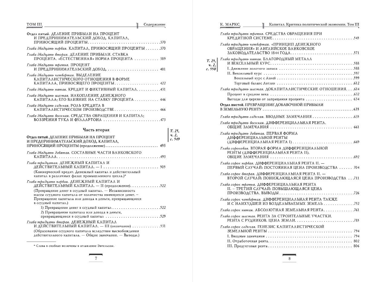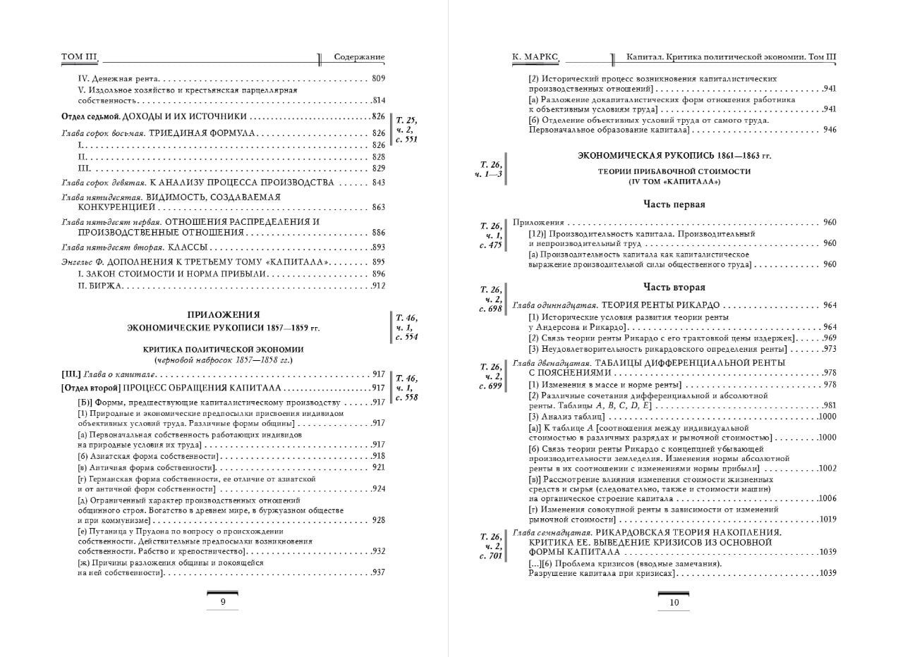 In preparing this edition, the experience of both classic Soviet editions and the latest German edition, published as part of the international MEGA project, was taken into account. The text of Volume III is published with a revised translation of several passages and commentary, free of the biased assessments of previous years. The appendix contains excerpts from "The Theories of Surplus Value" devoted to the analysis of D. Ricardo's theories of rent and production costs, as well as a fragment from the chapter on capital from the Grundrisse, relevant to the issues of Volume III. The text of Volume III is accompanied by double pagination in the margins, as well as an index of names, updated according to the latest German edition.