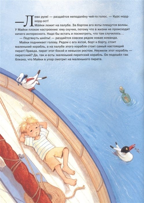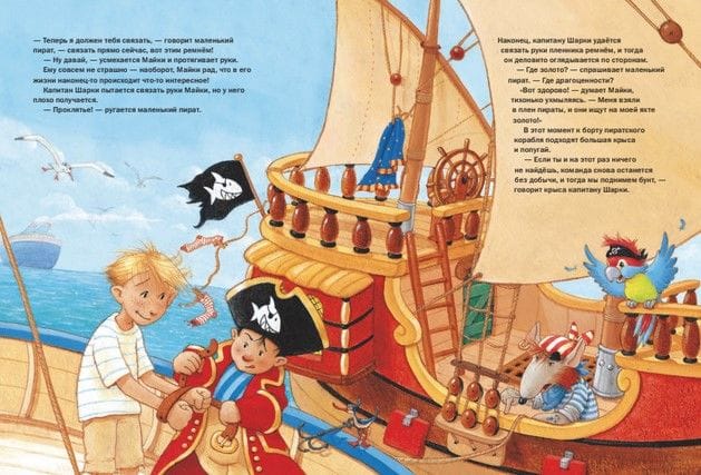 - Boarding party! - Captain Sharky shouts and jumps onto the deck of the boat, where a boy named Mikey sits bored. Finally something interesting happens in Máikey's life: he finds himself on a real pirate ship in the company of a little pirate and his crew! Captain Sharky and Mikey quickly become friends. In a bottle that Captain Sharkey picked up in the ocean, they find an old yellowed map of the island where the treasure is buried, and set off on a treasure hunt....