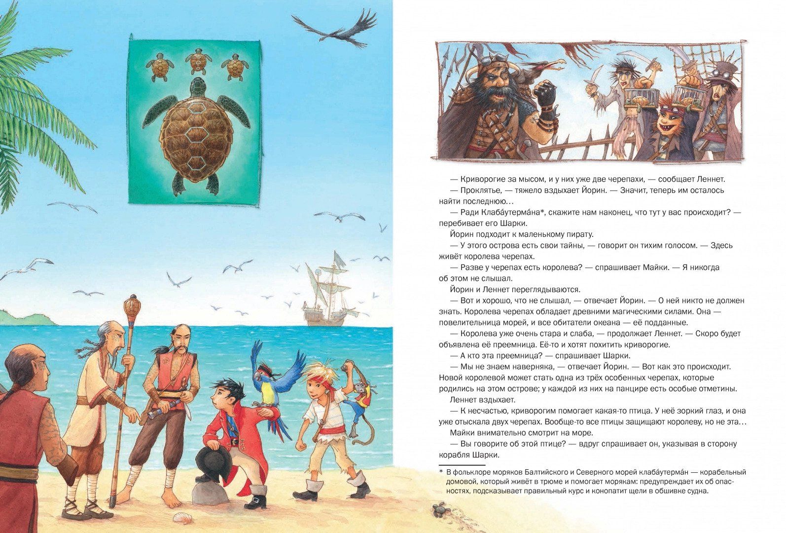 When Captain Sharky and his crew sail back to Turtle Beach, Captain Rufus's pirates sink their ship and kidnap Easy the turtle. Sharky and his friends stay on the island, which is full of secrets and mysteries: it turns out that the turtle queen has lived here since time immemorial. In order to save Easy, Captain Sharky asks the queen for help, and she gives the little pirate a piece of an old steering wheel....