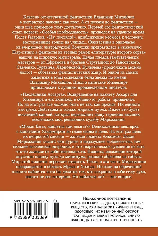 Vladimir Mikhailov, a classic of Russian science fiction, began his literary career as a poet. And from poetry to science fiction is only a short step, as evidence abounds. His first foray into science fiction, the story "Special Necessity," came at an opportune time. Gagarin's flight, "Well, Let's Go!", the approach of space to humanity, the enthusiastic crowds in the streets… Science fiction, overnight, transformed from yesterday's literary Cinderella into a fairytale Firebird, and science fiction writers emerged from the confines of "second-rate literature" onto a broad highway. A whole galaxy of remarkable masters, from Yefremov and the Strugatsky brothers to Gansovsky, Savchenko, Gurevich, Larionova, Bulychev (the list goes on), enriched the science fiction genre. And one of the most prominent in this constellation was a star named Vladimir Mikhailov.