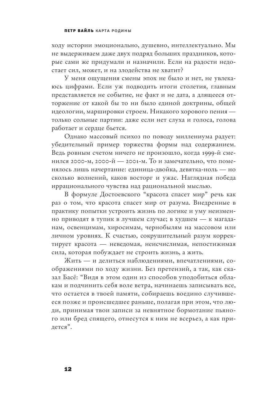 Pyotr Weil (1949-2009) was a well-known journalist, writer, one of the founders of the genre of Russian postwar essayism, author of the books "The Genius of Place" and "Poems about Me". Also, in co-authorship with A. Genis, he wrote "Native Speech", "Russian Cuisine in Exile" and others. Peter Weil emigrated from the USSR in 1977 and lived abroad until the end of his life. "Map of the Motherland" is a collection of essays about his travels in the country in which he was born and which no longer exists.