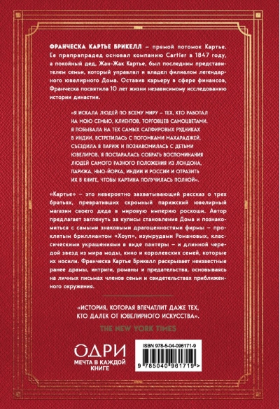The history of the legendary brand is described in dozens of books. But none of them, no matter how splendidly they are set out, can compare with the work of the family member himself. Francesca Cartier Brickell, whose great-grandfather was the youngest of the founding brothers of the jewelry house, spent more than a decade traveling the world in search of the true and hitherto unknown history of Cartier.