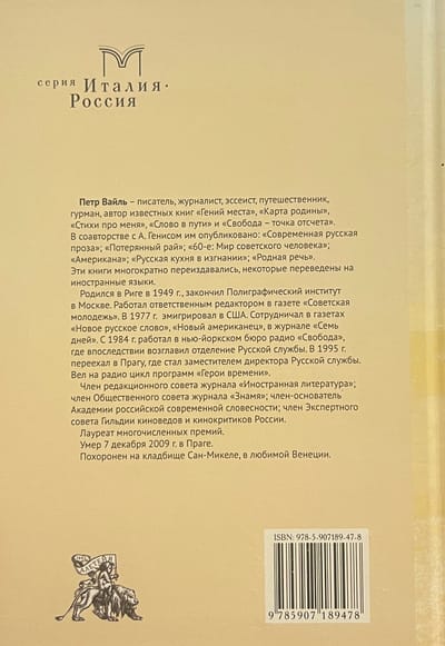 This collection includes texts by the writer Peter Weil devoted exclusively to Italy. Published in more than a hundred editions over the course of twenty years, they are imbued with love for this country, its culture, people, and cooking.