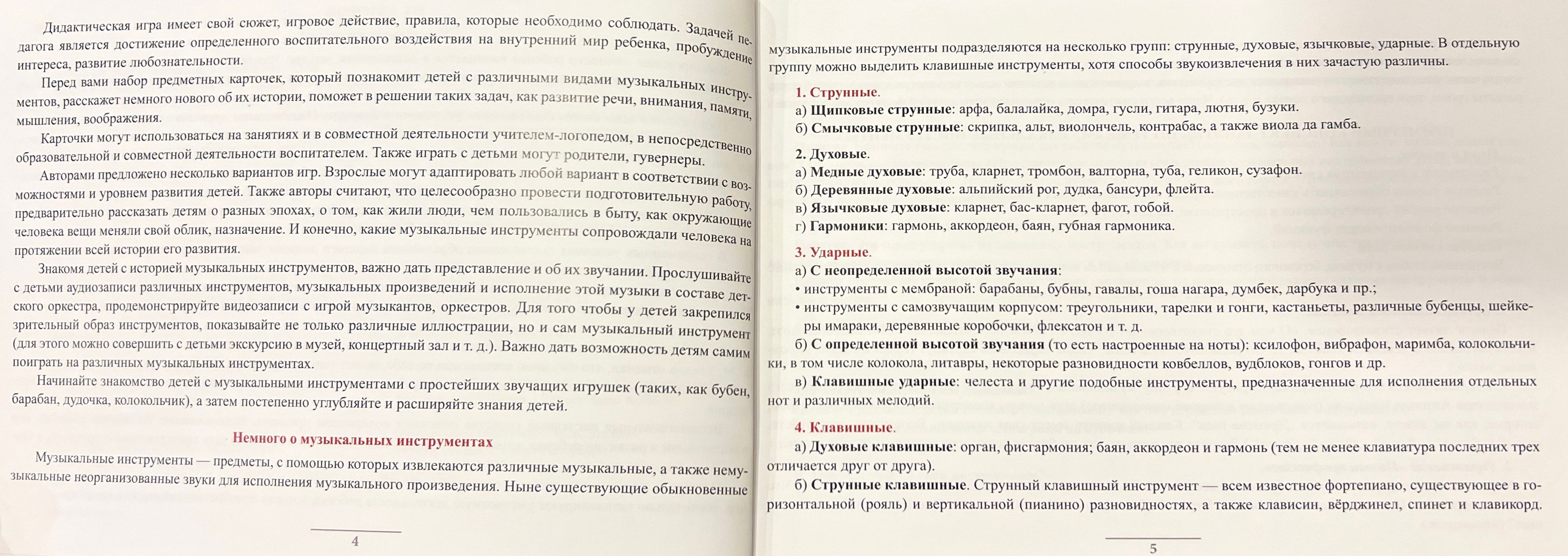 The subject pictures "History of Musical Instruments" can be used both in music lessons and in general education or home games with a child. The authors offer lesson notes and scenarios of didactic games to help teachers and parents.