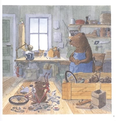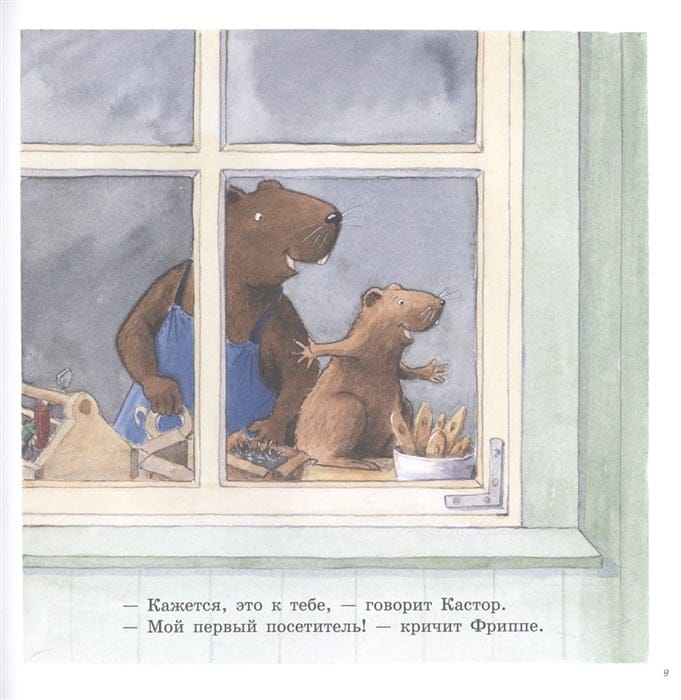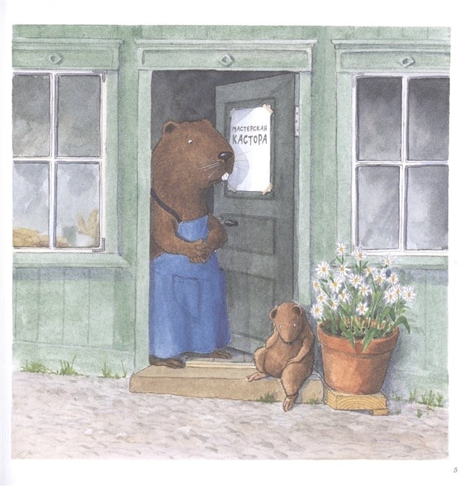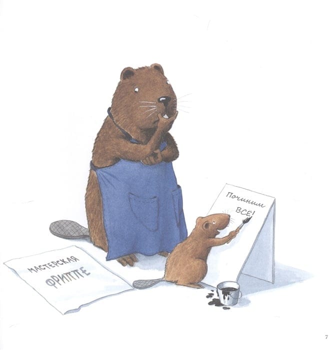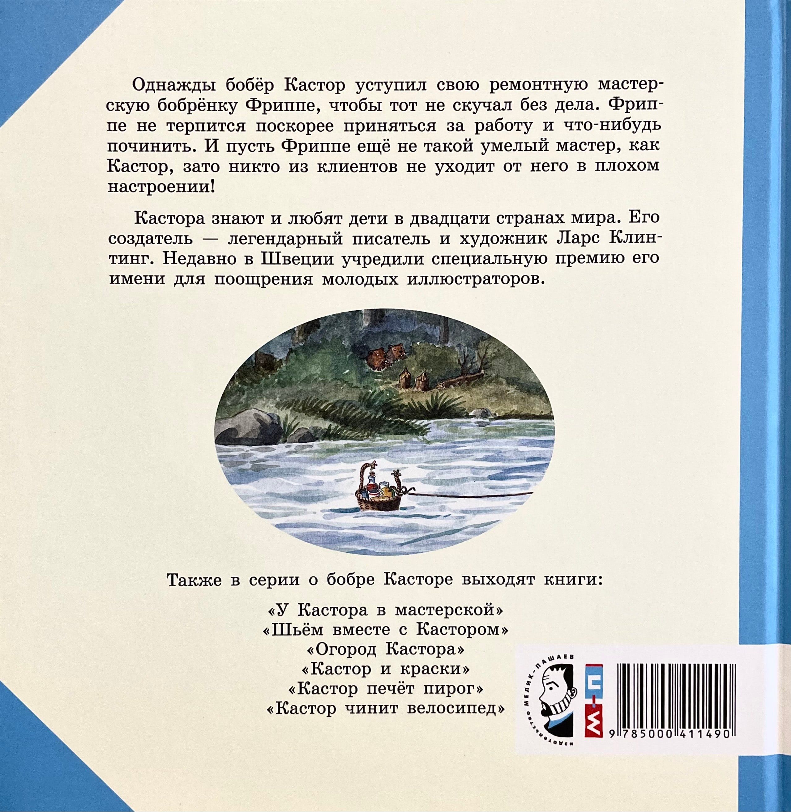 One day, Castor the beaver gave his repair shop to Fripp the beaver cub for a while so that he wouldn’t get bored without something to do. Fripp is eager to fix something, because Castor has already taught him a lot: sewing, painting, and carpentry. Thanks to the beaver’s rich imagination, repair work brings the most unexpected results: for example, Mr. Bobrikson’s broken bicycle turns into a circus unicycle, Mrs. Khvostberg’s robe into an elegant scarf, and Mr. Bulquist’s ironing board into a roller board. “Actually, it didn’t turn out quite what you wanted,” says Fripp. “But maybe it’ll be good for something else?” However, none of Fripp’s clients leave in a bad mood, and that’s the most important thing. After all, if you work with soul, then everyone will like the result. Castor the beaver is known and loved by children in twenty-five countries around the world. Its creator is the legendary Swedish children's writer and illustrator Lars Klinting, winner of numerous international awards.