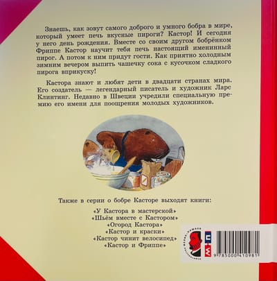 The charming beaver Castor is already well known to many readers. He knows how to bake pies, sew aprons, grow beans, do carpentry and paint, and he does it so “infectiously” that you definitely want to repeat everything after him. In the book “Castor Bakes a Pie”, Castor and his friend Frippe the beaver bake a real birthday pie for Castor’s birthday. They mix the dough from the necessary ingredients, beat it with a mixer, put it in a form sprinkled with breadcrumbs, put it in the oven and wait for the pie to brown. A detailed recipe for this simple but very tasty pie is given at the end of the book, so that after reading the fairy tale, parents and children can go to the kitchen and cook exactly the same pie according to all the rules of real chefs. The book is perfect for creative leisure with children aged 3-6. The beaver Castor is known and loved by children in twenty-five countries of the world. Its creator is the legendary Swedish children's writer and illustrator Lars Klinting, winner of numerous international awards.