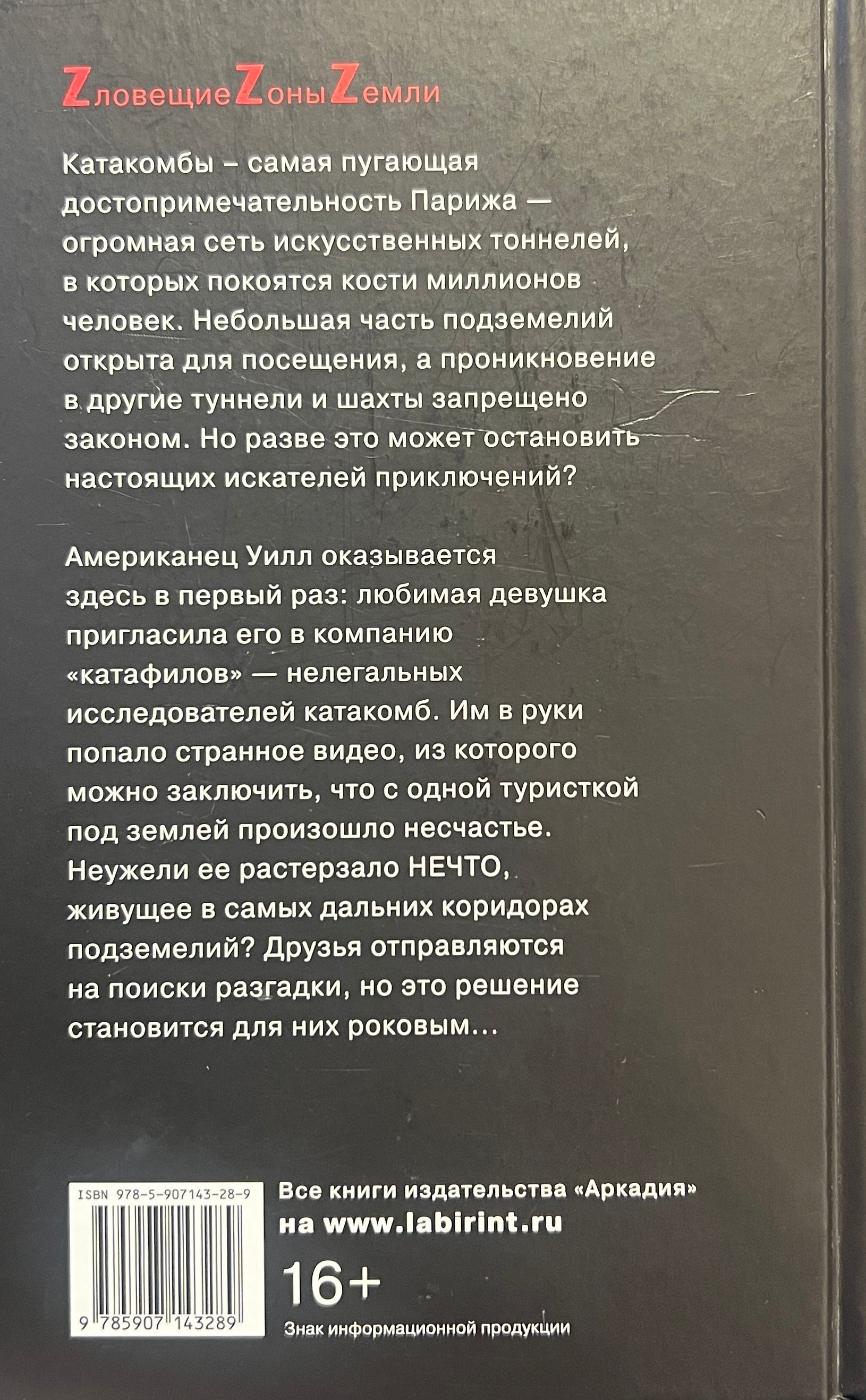 A company of adventurers - three guys and a young girl - descend into the Parisian catacombs to search for traces of a tourist who disappeared there. Unfortunately, they don't find her. But on the way they will have to face a cruel and formidable force, in the power of which they will find themselves. Will they be able to free themselves and find their way up, or will their fate be to remain in the underground captivity forever?