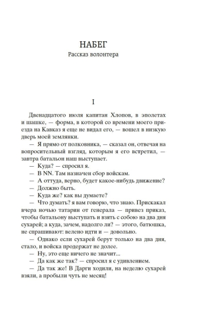 The edition publishes the so-called Caucasian works of Leo Tolstoy: the stories "The Raid", "Chopping Wood", "The Prisoner of the Caucasus" and the novels "The Cossacks" and "Khadzhi-Murat". They reflected the writer's impressions of his three-year service in the Caucasus. In 1851, he went there to his older brother Nicholas, an officer in the active army, and almost three years lived in a Cossack village on the banks of the Terek. The story "Cossacks" is rightly called the main work of L. H. Tolstoy 1850s, on which he worked, with interruptions, 10 years (1853-1863). The story "Hadji Murat" he created in the last period of his life, but its creative history goes back to the 1850s: looking back, going through memories and rereading old diaries, Tolstoy blesses this difficult and amazing time - great trials and great insights.