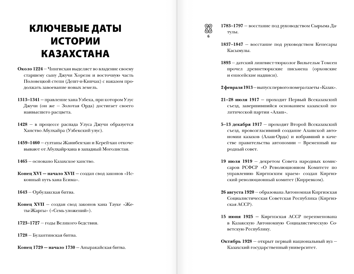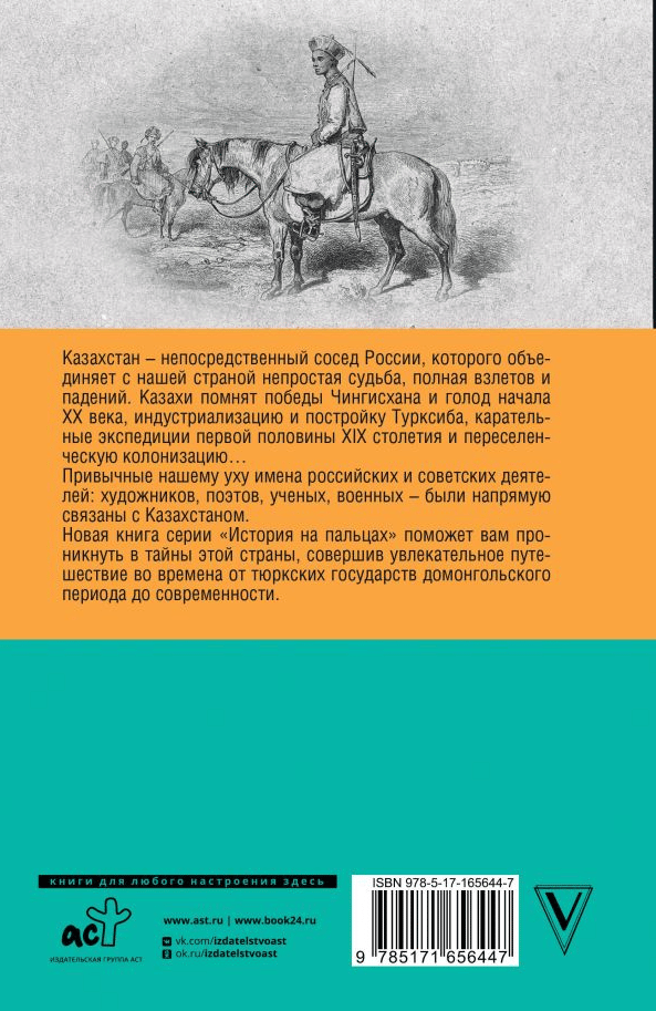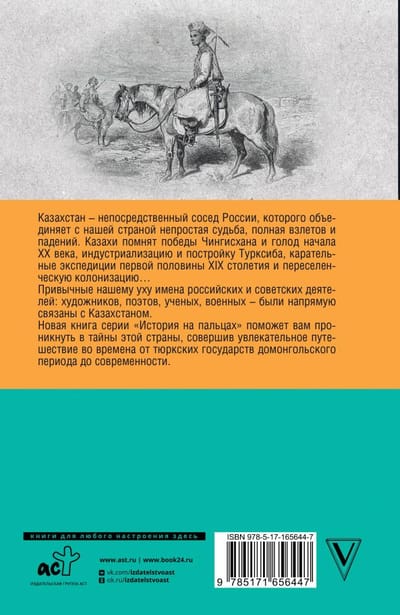 Kazakhstan is Russia's immediate neighbor, which shares a difficult fate with our country, full of ups and downs. Kazakhs remember the victories of Genghis Khan and the famine of the early 20th century, industrialization and the construction of the Turksib, punitive expeditions of the first half of the 19th century and resettlement colonization... The names of Russian and Soviet figures familiar to our ears - artists, poets, scientists, military men - were directly connected with Kazakhstan. The new book in the "History on the Fingers" series will help you penetrate the secrets of this country, taking a fascinating journey through the times from the Turkic states of the pre-Mongol period to the present day.