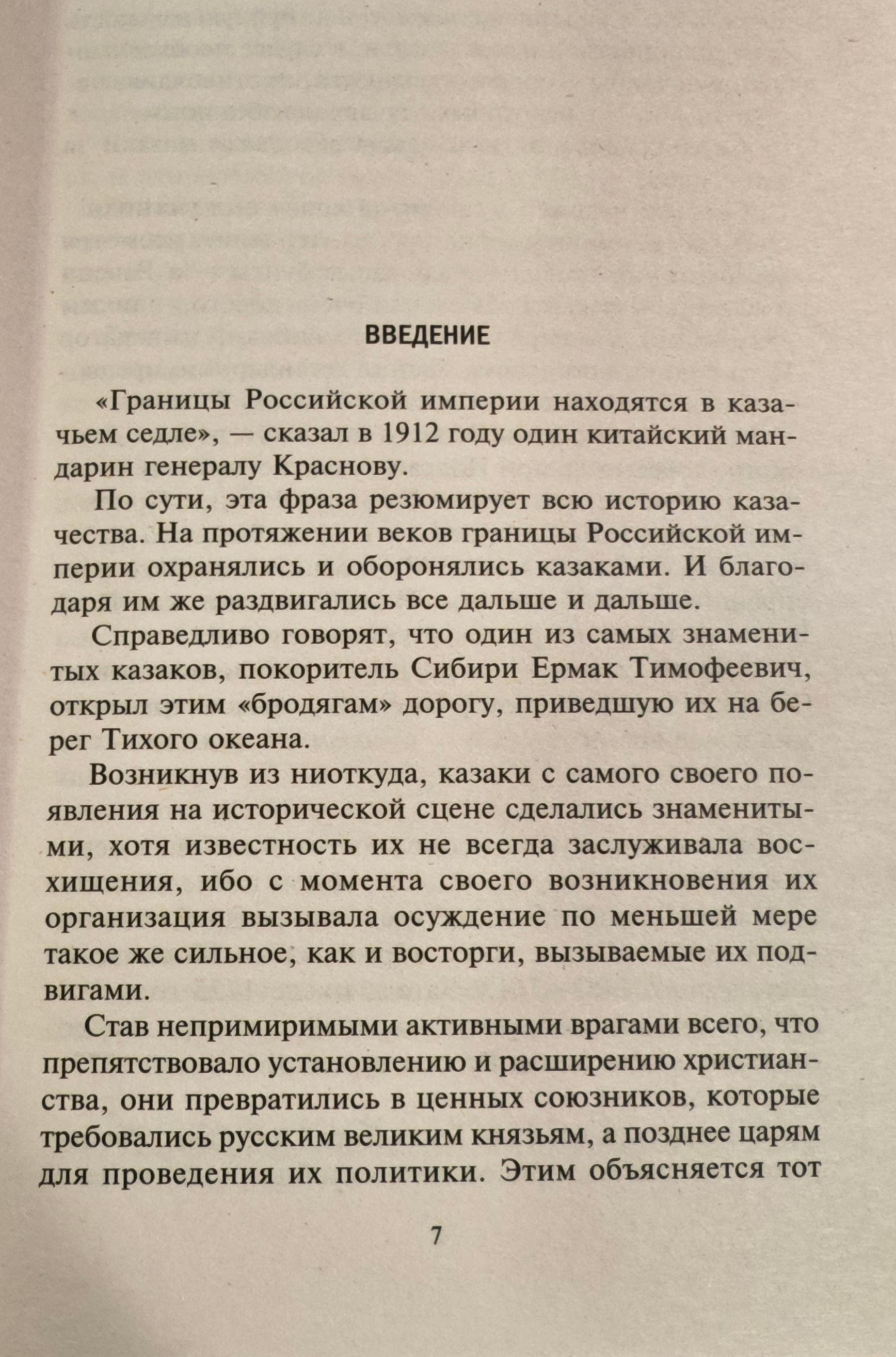 The author traces the centuries-old path of the Cossacks from free communities to service in the guard regiments of the Russian Imperial Army, describes the history of the emergence of eleven Cossack troops that took part in military campaigns, the conquest of Siberia and the development of the lands of the Far East.