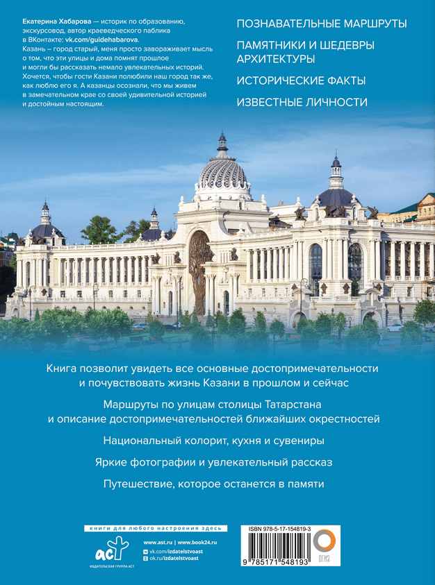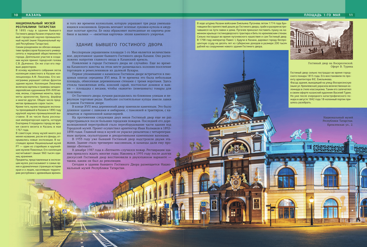 This publication describes the most beautiful and interesting places in the city and its surroundings. Use this book to plan a walking route around the city and discover must-sees. This guidebook is an excellent gift album for those who love walking—a unique incentive to explore new and exciting places. It also makes a wonderful gift for those who can't afford to travel to the "third capital of Russia," as the information and photos in the book help you explore Kazan without leaving home, immersing yourself in the informative narrative and evocative photographs.