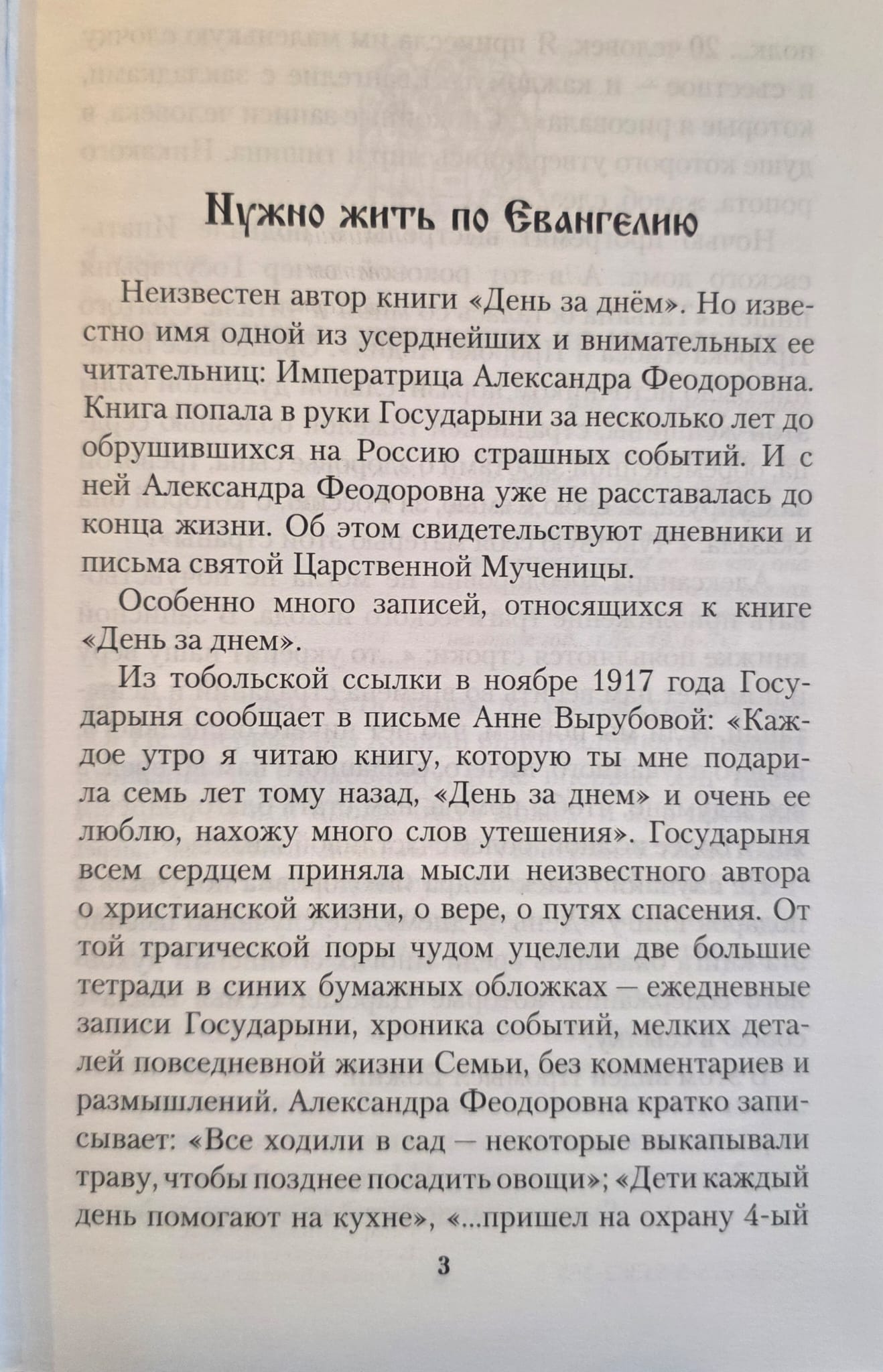 Although the author of "Day by Day," first published in 1908, remains unknown, reading it leaves you with the feeling that you are speaking to a righteous person, one whose life before God is blameless. It contains thoughts on the Christian life and the path to salvation. The book's words are imbued with a quiet radiance of faith that will surely resonate in the hearts of Orthodox Christians.