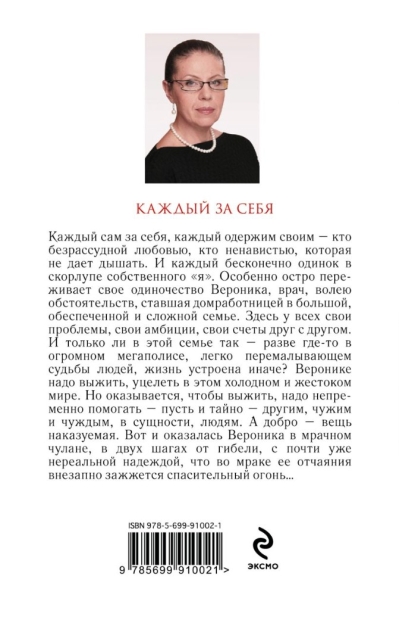 Each for himself, each obsessed with his own - some with reckless love, some with a hatred that makes it impossible to breathe. And everyone is infinitely lonely in the shell of his own "I". Veronica, a doctor, who by the will of circumstances has become a housekeeper in a large, wealthy and complicated family, feels her loneliness especially acutely. Here everyone has their own problems, their own ambitions, their own scores with each other. And is it only in this family so - is it somewhere else in a huge megalopolis, easily grinding the fate of people, life is organized differently? Veronica needs to survive, to survive in this cold and cruel world. But it turns out that in order to survive, it is necessary to help - albeit secretly - to help others, strangers and alien, in fact, people. And goodness is a punishable thing. So Veronica finds herself in a gloomy closet, two steps away from death, with an almost unrealistic hope that in the darkness of her despair will suddenly light a saving fire ...