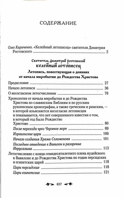 The historical and chronographic work of St. Demetrius of Rostov, "The Cell Chronicler", written by him in the last years of his life, enjoyed great popularity in the 18th and 19th centuries. Its content uniquely combines the genre of the chronograph - the oldest historical chronicle - with theological considerations, which determines the special semantic capacity of the text. St. Ignatius Bryanchaninov and St. Ambrose of Optina pointed out the special significance of the Chronicler "for guidance in life itself, to know and be able to know how to act in a purely Christian manner, according to the Orthodox rulings". The book is accompanied by an introductory article telling about the history of the creation of the Chronicler.